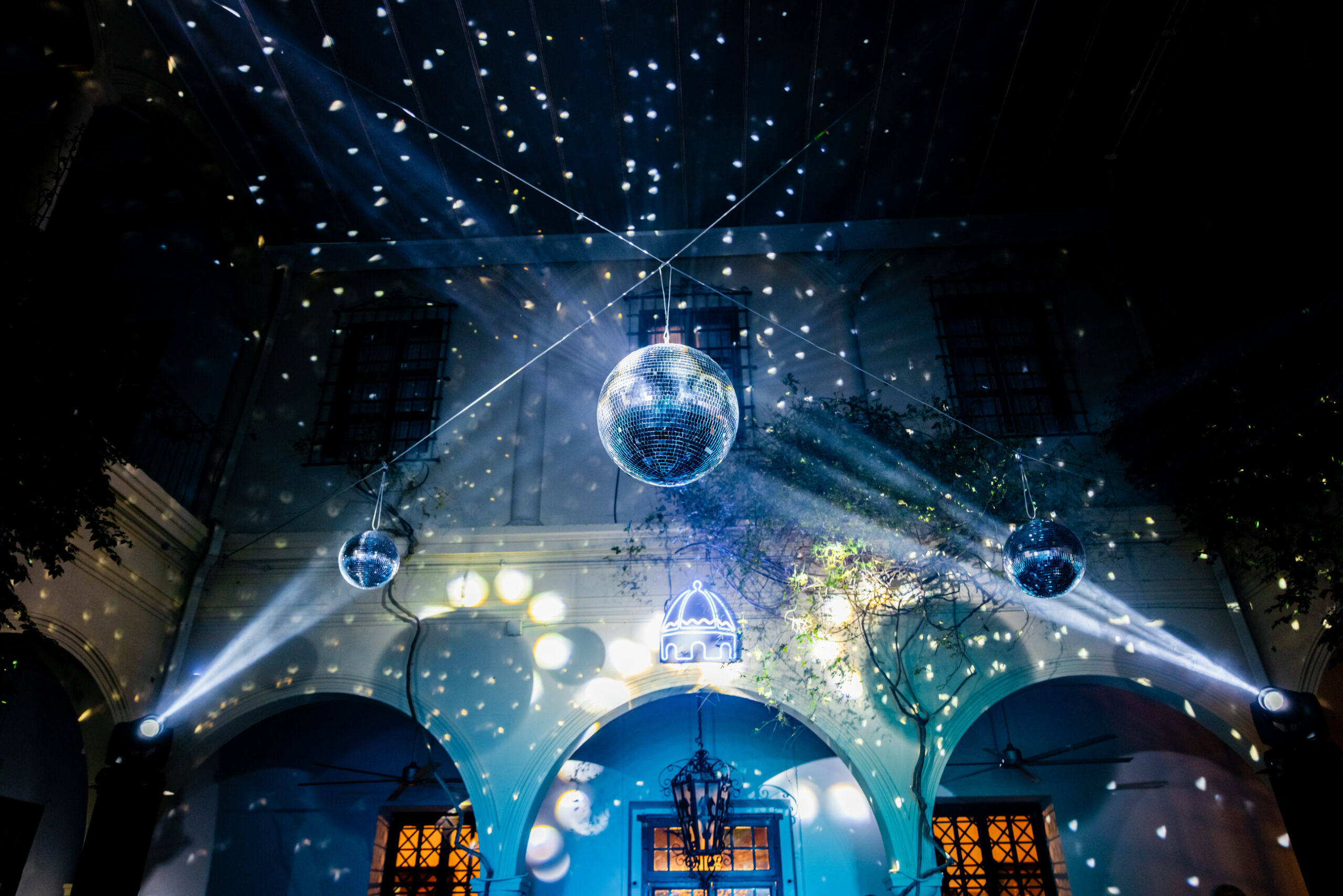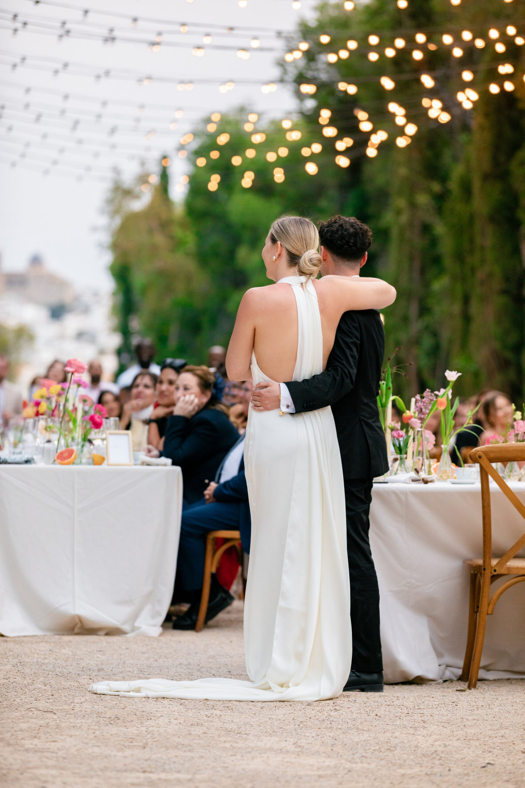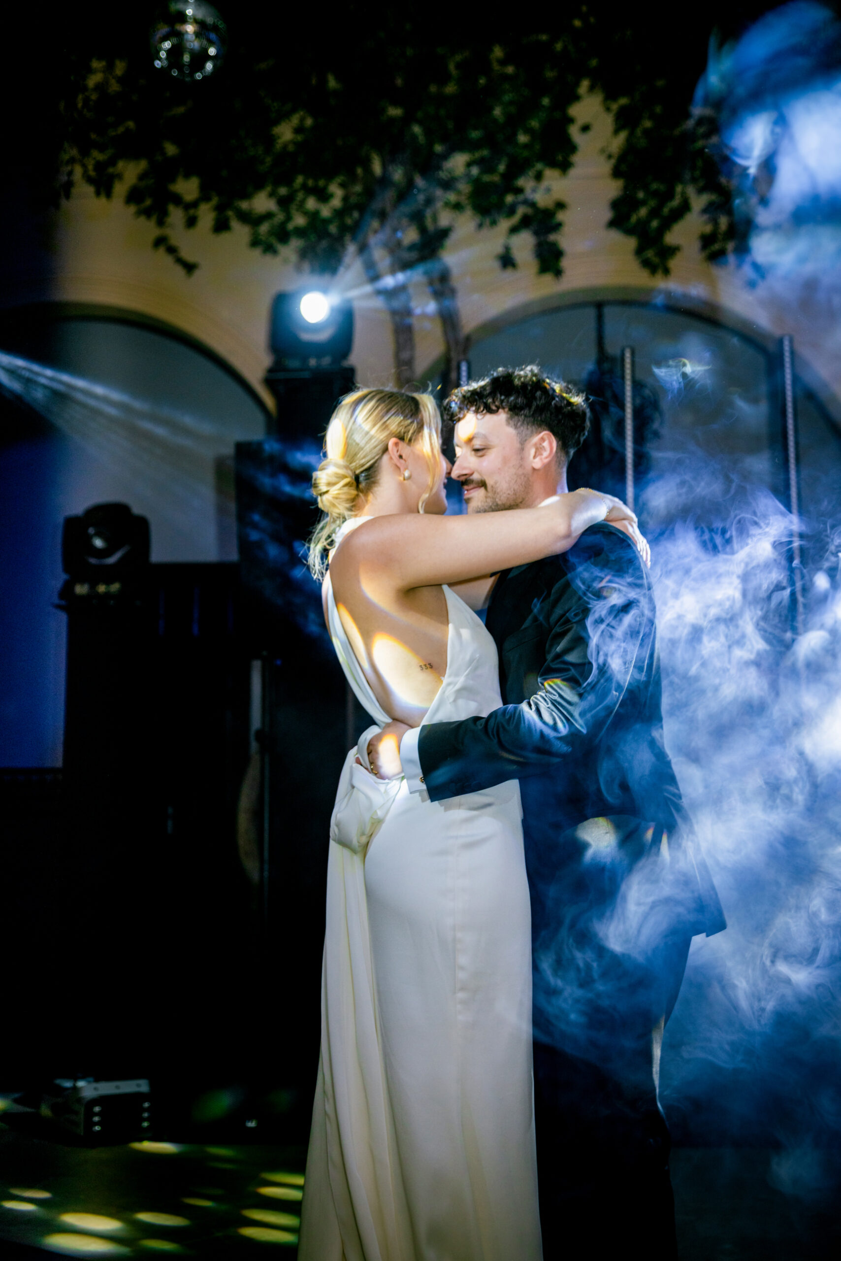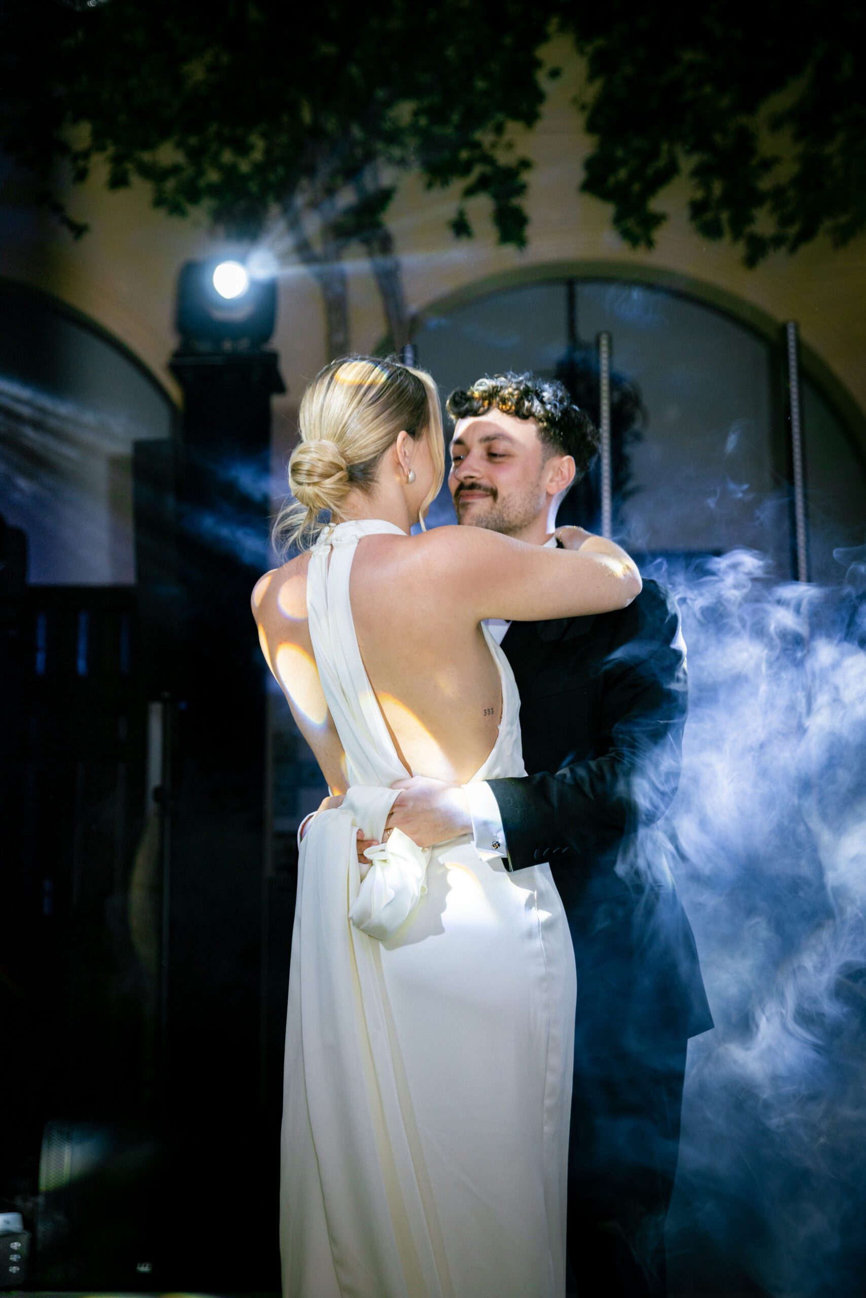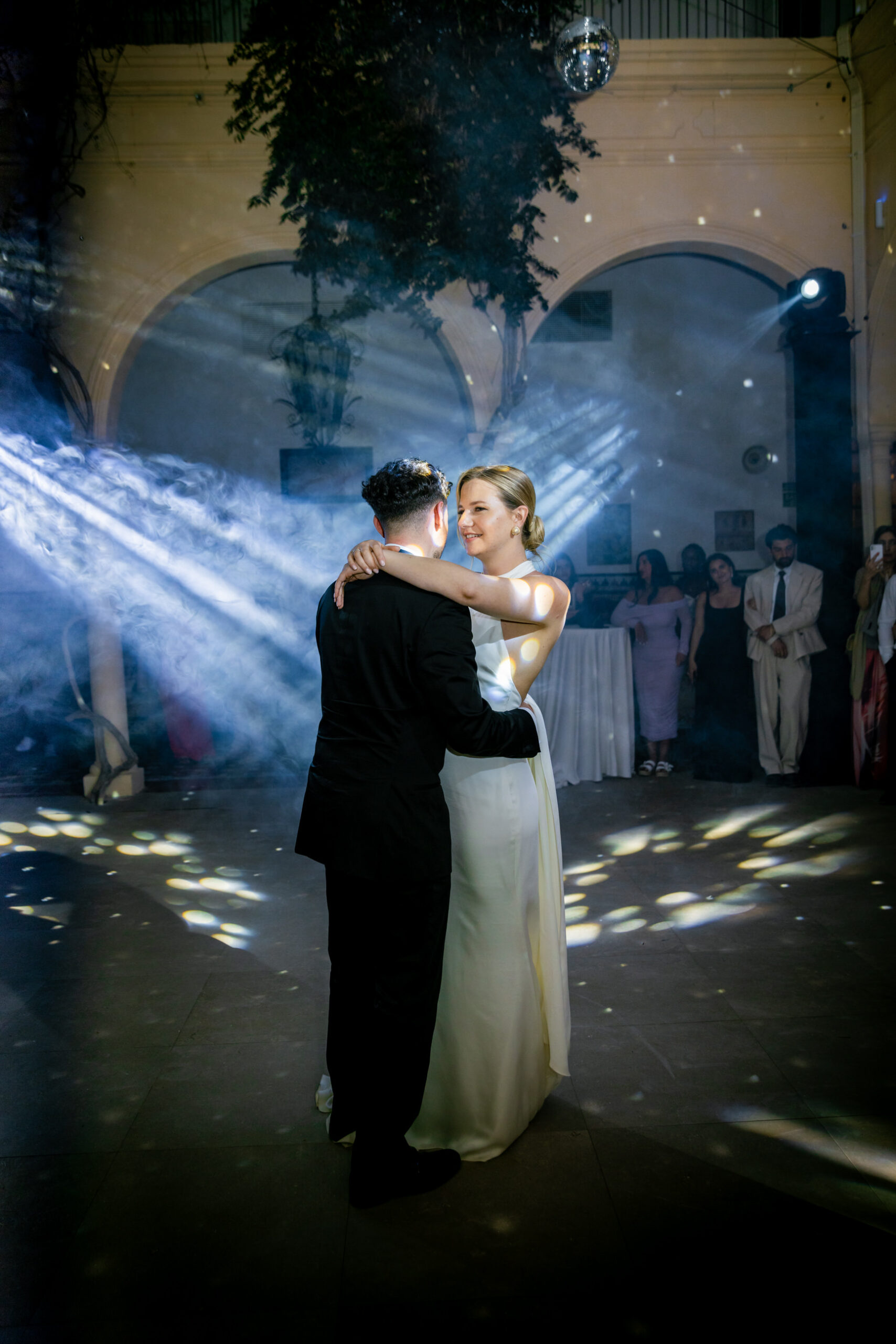 After a dinner on the facade of Marques de Montemolar and privileged views of the Church where they got married, Lauwens and Naomi delighted us with a blue-bathed dance to a very slow Elvis song.