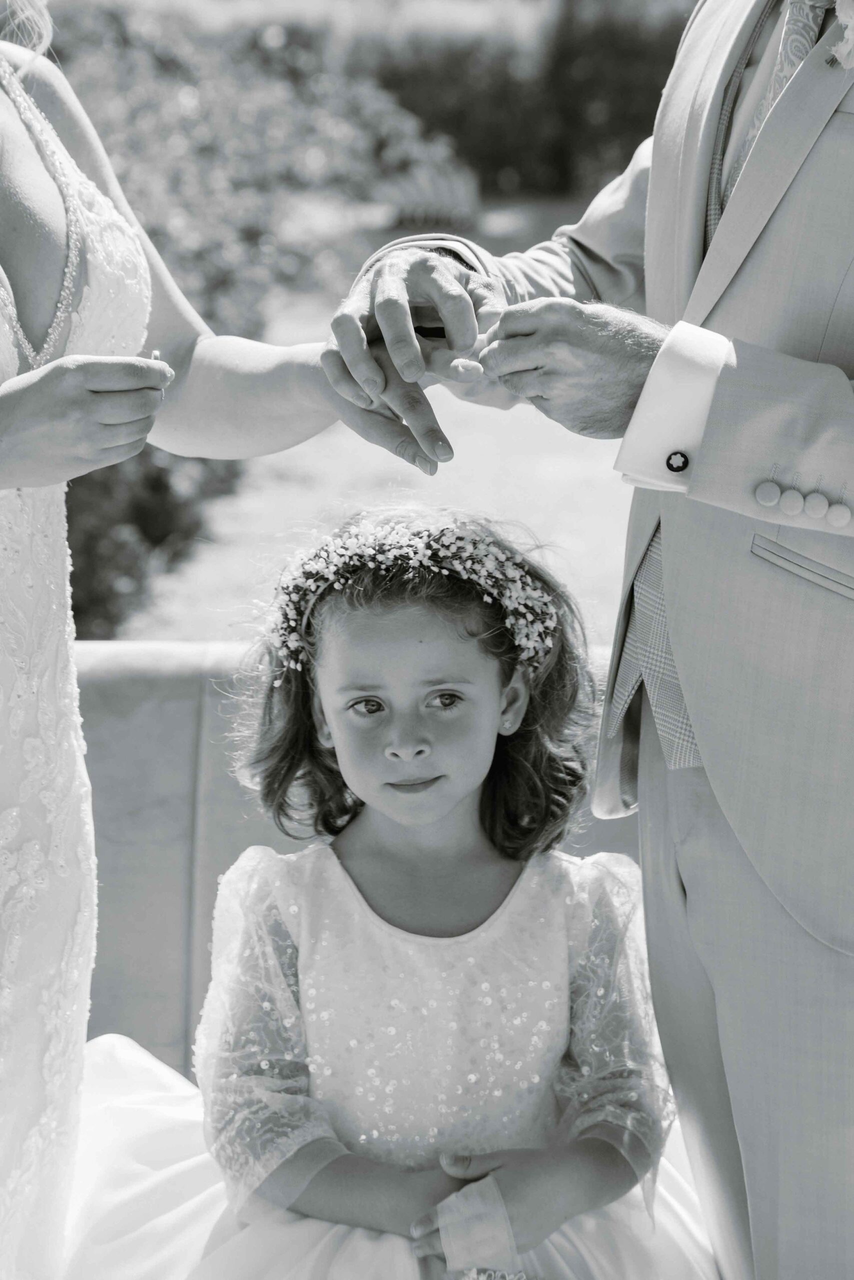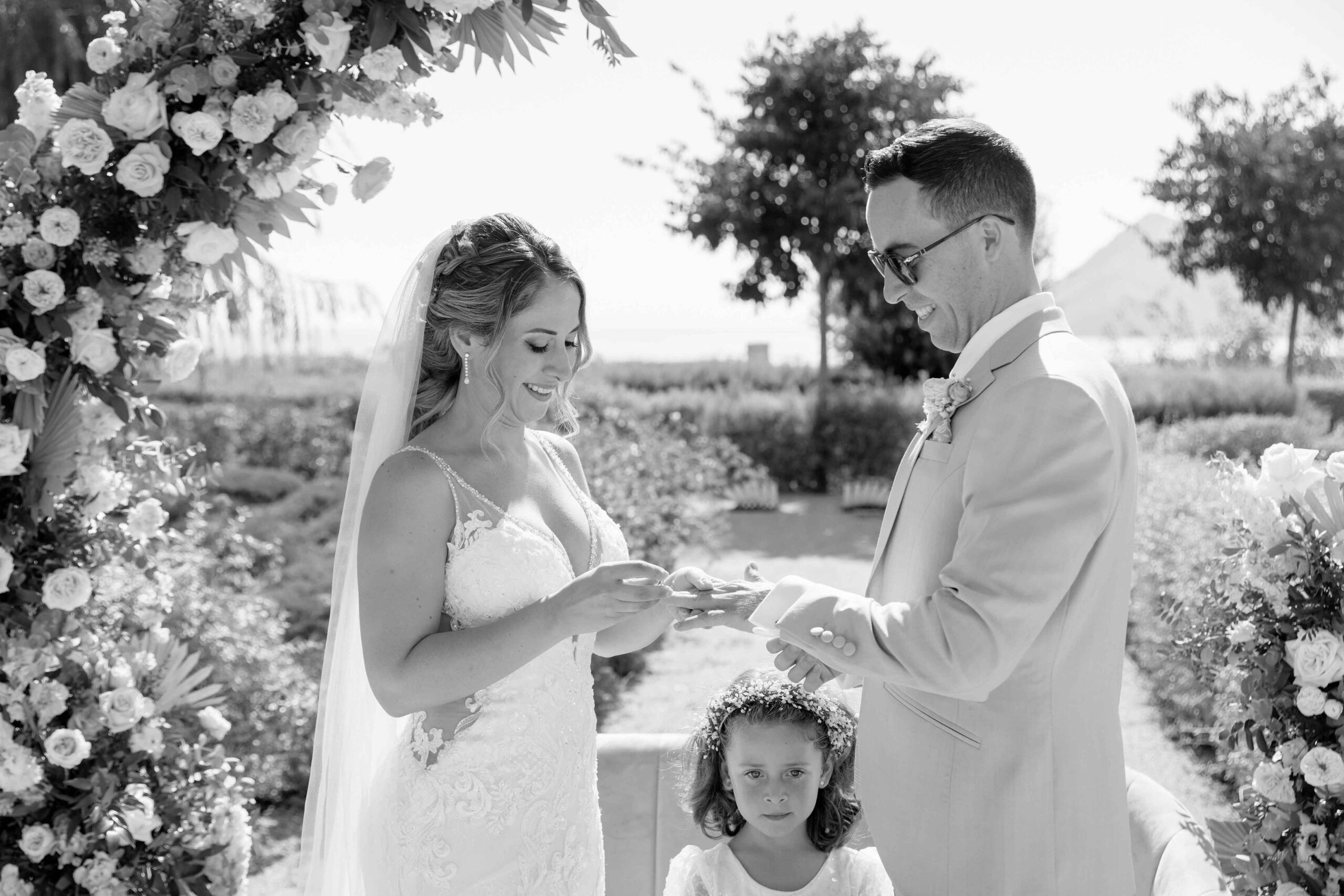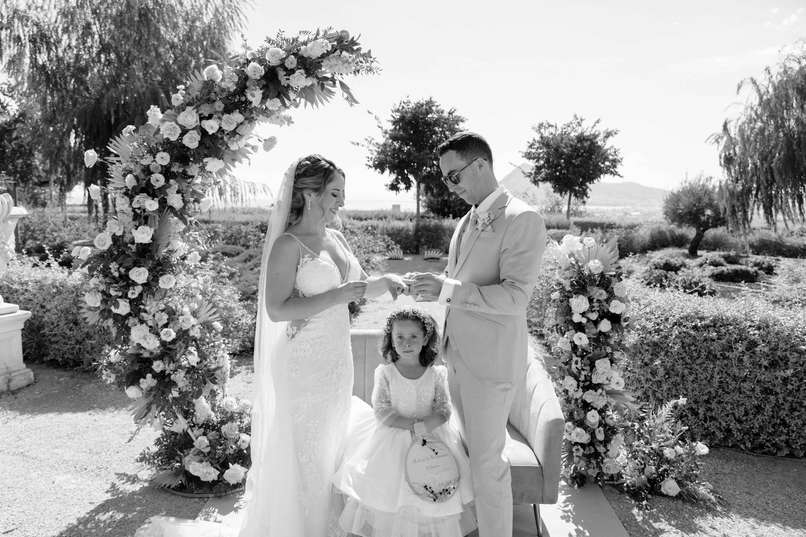 The civil ceremony was celebrated at the garden. Of course, their little girl was the best witness of it.